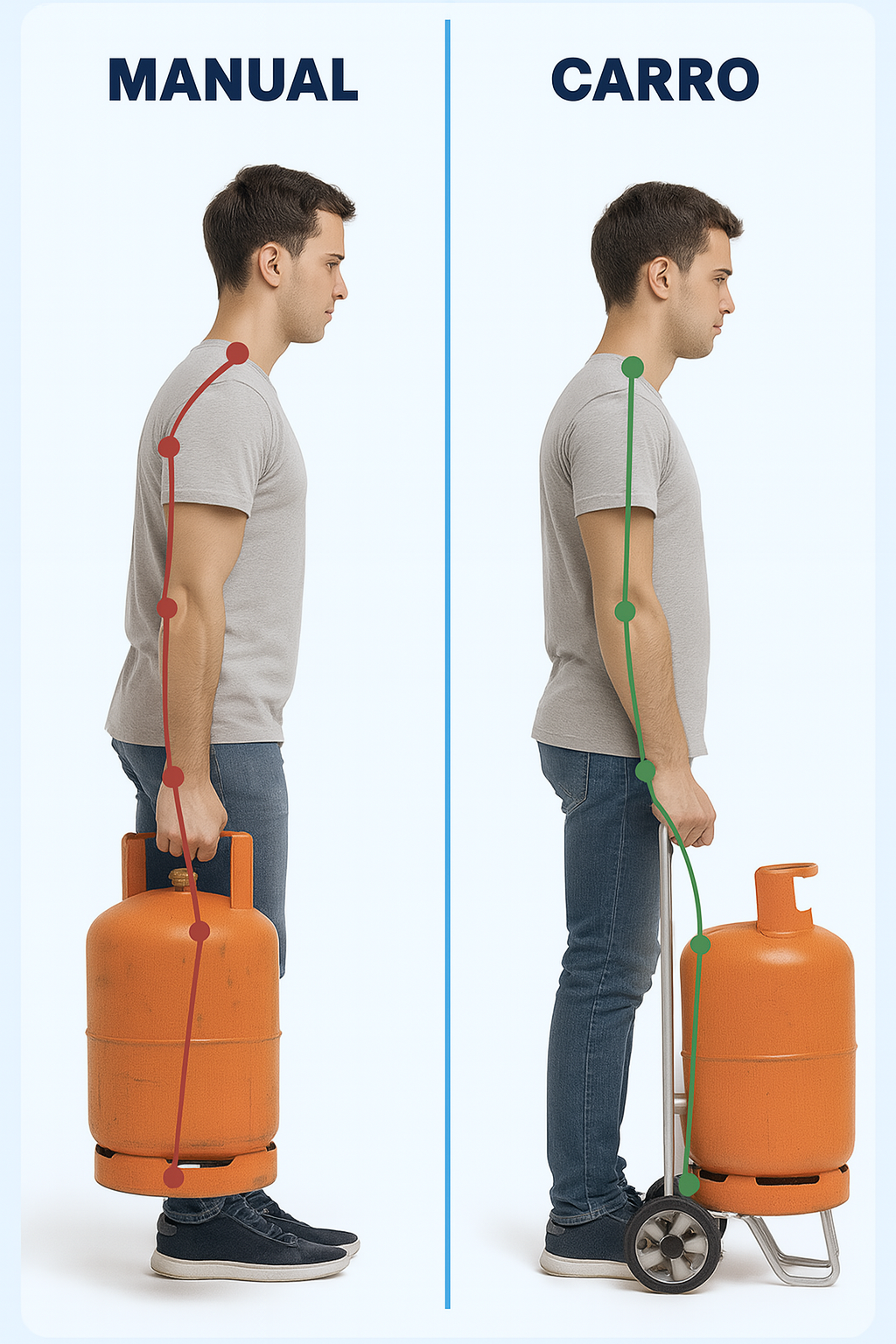 Evita lesiones y reduce el riesgo de accidentes. Transporta bombonas con un equipo diseñado para tu comodidad.